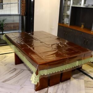 Add a refreshing look to your home with this elegant Lace table cover suitable for a 4-seater dinning table, can be used on central table also offered to you by Viya Kart. This amazing table cover is made of superior quality PVC vinyl material which is 100 percent oil and water proof and also resistant to rough handling. The PVC design of this cover allows the beauty of the table to still show while ensuring proper protection. Highly protective against scratches and stains. This table cover is ideal if you want to add a little glamour to the ambience of your dining and living room. Table Cover is always attraction for any home and to make it more attractive, we presents the beautiful and elegant cover which will enhance the beauty of your center and dinning table. It is made of high quality PVC material which gives it a long and durable life and make it easy to use and clean. It is water and dust proof and protects your center and dinning table surface. Protect your valuable furniture from accidental spills and mishaps by spreading this durable table cover. This elegant floral design allows displaying the beauty of your table while ensuring proper protection. This product also enhances the life and functionality of the furniture. Size- 152 length and 95 weight . Pvc material is used in the manufacturing of table cover.