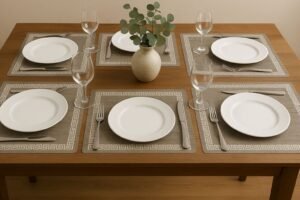 Package Contents: 6 Pieces Dining Table Placemat Set, Material: PVC, Size Name: Standard,Size:45 cm x 30 cm, Made of quality PVC material, this set contains 6 pieces of place mats, these mats are very useful and multi-purpose, you can use these as refrigerator drawer mat and place mat also, These placemats decorates your dining table and gives it an exotic look and also protects table from scratches and wet marks ,The color and design of the mats are praiseworthy and looks very attractive and elegant and will enhance the beauty of your dining as well as your kitchen, DOUBLE LAYERS LEATHER : Made of double layers PU and PVC leather, anti-slip, heat-resisting, waterproof and very easy to clean by simply wiping (NOT like canvas cotton or usual knitted table mats, very easy to dirty and hard to clean). Durable and environment friendly, no any smell. Gifts – Great gift idea for all occasions, Christmas ,Wedding, Fathers Day, Mothers Day, Valentines, Thanksgiving.