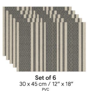 Package Contents: 6 Pieces Dining Table Placemat Set, Material: PVC, Size Name: Standard,Size:45 cm x 30 cm, Made of quality PVC material, this set contains 6 pieces of place mats, these mats are very useful and multi-purpose, you can use these as refrigerator drawer mat and place mat also, These placemats decorates your dining table and gives it an exotic look and also protects table from scratches and wet marks ,The color and design of the mats are praiseworthy and looks very attractive and elegant and will enhance the beauty of your dining as well as your kitchen,