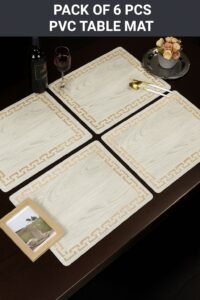 Package Contents: 6 Pieces Dining Table Placemat Set, Material: PVC, Size Name: Standard,Size:45 cm x 30 cm, Made of quality PVC material, this set contains 6 pieces of place mats, these mats are very useful and multi-purpose, you can use these as refrigerator drawer mat and place mat also, These placemats decorates your dining table and gives it an exotic look and also protects table from scratches and wet marks ,The color and design of the mats are praiseworthy and looks very attractive and elegant and will enhance the beauty of your dining as well as your kitchen, DOUBLE LAYERS LEATHER : Made of double layers PU and PVC leather, anti-slip, heat-resisting, waterproof and very easy to clean by simply wiping (NOT like canvas cotton or usual knitted table mats, very easy to dirty and hard to clean). Durable and environment friendly, no any smell. Gifts – Great gift idea for all occasions, Christmas ,Wedding, Fathers Day, Mothers Day, Valentines, Thanksgiving.